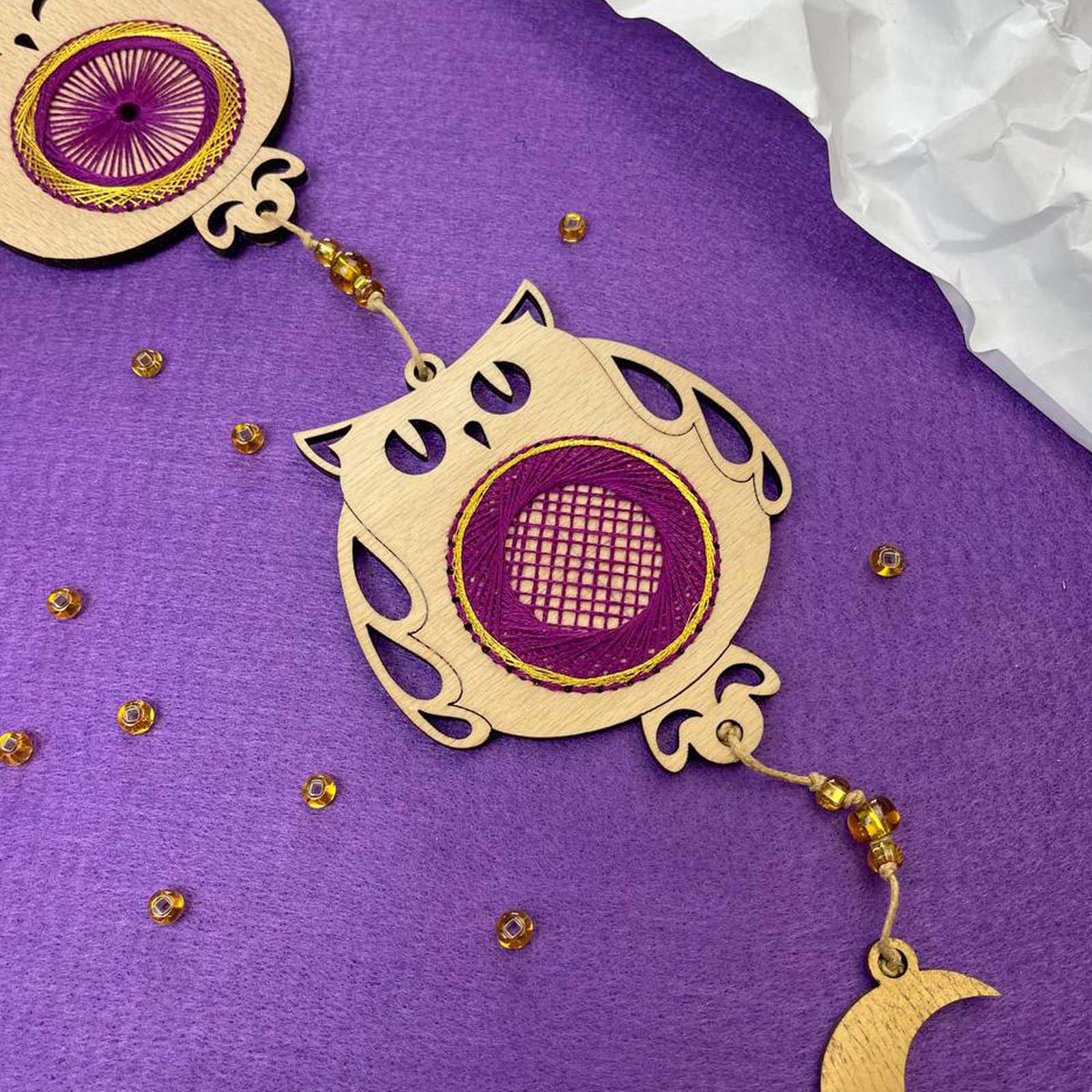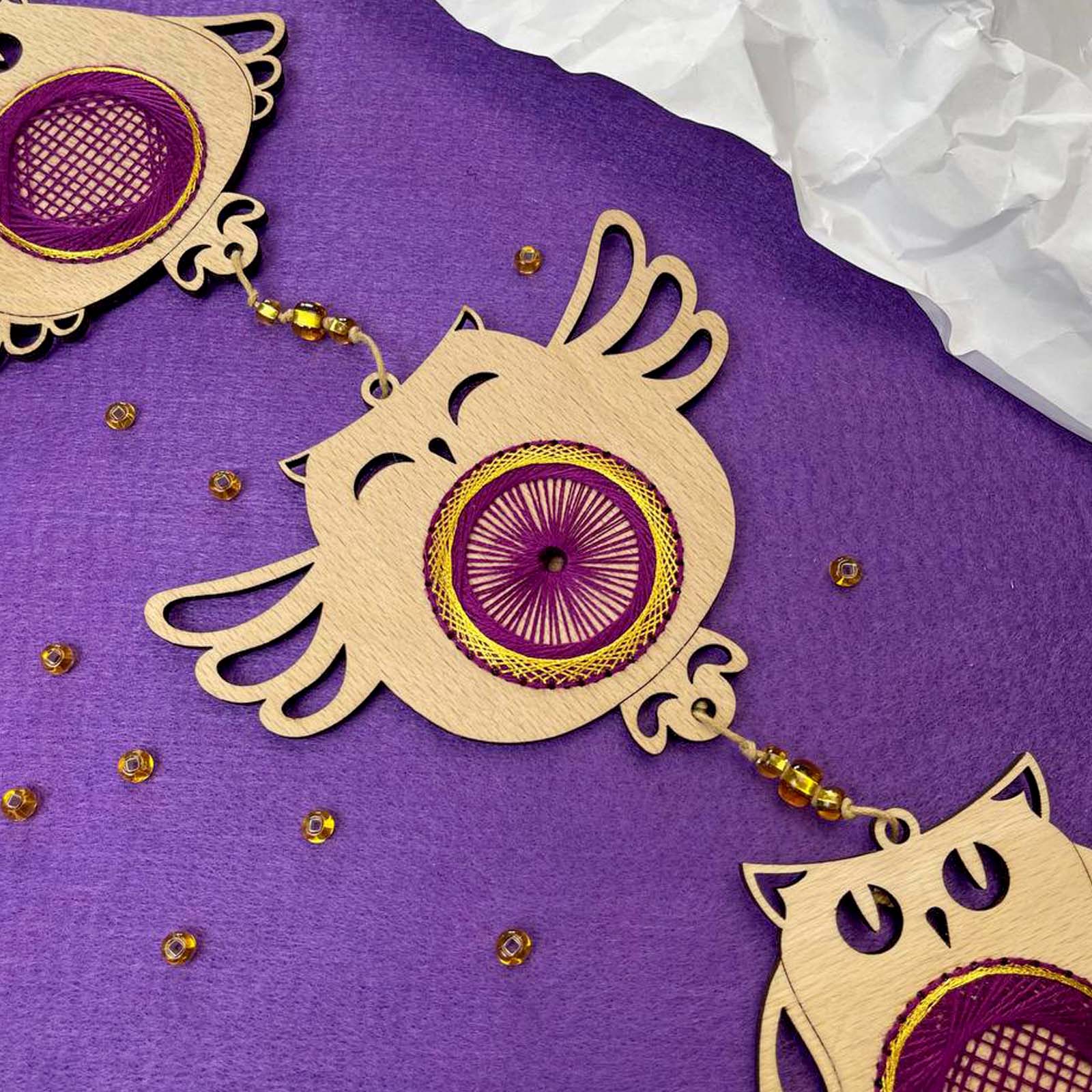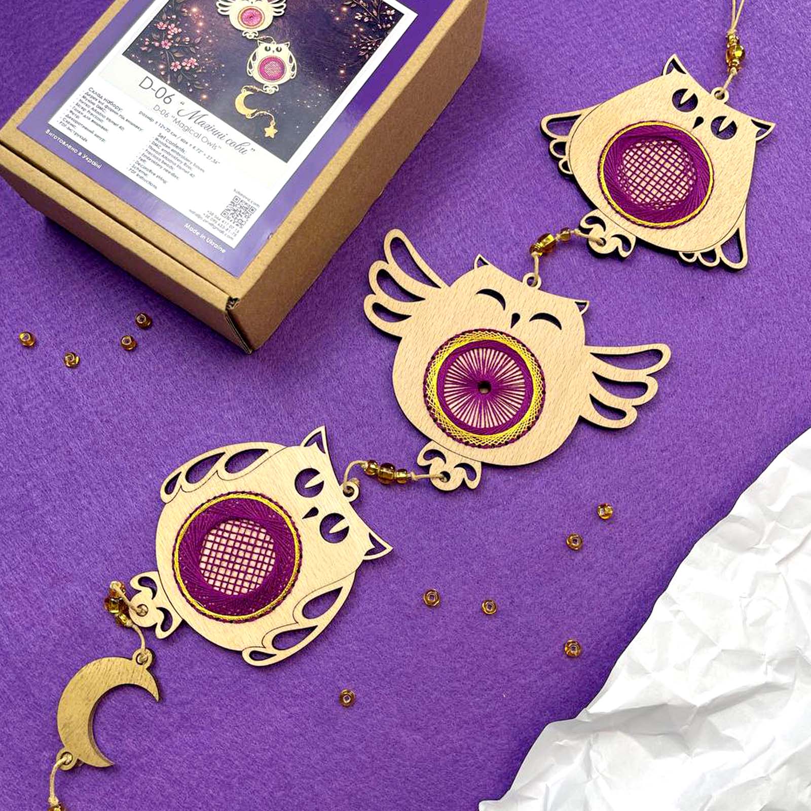 Декор D-05 «Магічні сови» — це унікальний набір 2 в 1, який поєднує захопливий процес вишивки та готовий декоративний виріб. Ви не просто створюєте вишивку, а формуєте повноцінний елемент декору ручної роботи, який стане виразною прикрасою інтер’єру або особливим подарунком. Завдяки дерев’яній основі виріб після завершення роботи виглядає завершено та не потребує додаткового оформлення.