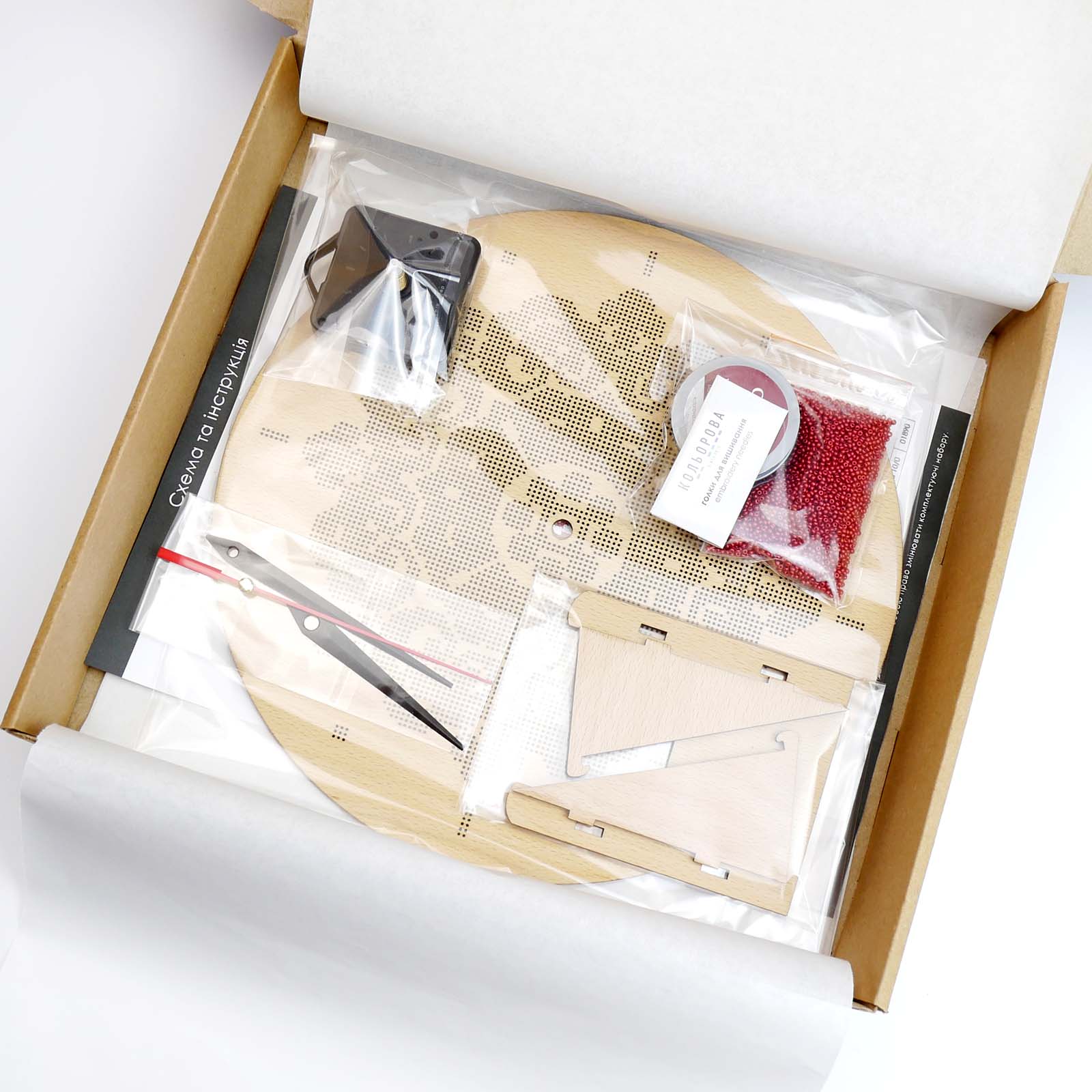 Вишивка бісером на дерев'яній основі — це ідеальний варіант як для початківців так і для досвідчених майстрів, а готовий безшумний годинник handmade стане ексклюзивною прикрасою чи незабутнім презентом на новосілля або день народження. Обирайте найкращі товари для рукоділля від ТМ Кольорова та створюйте шедеври!