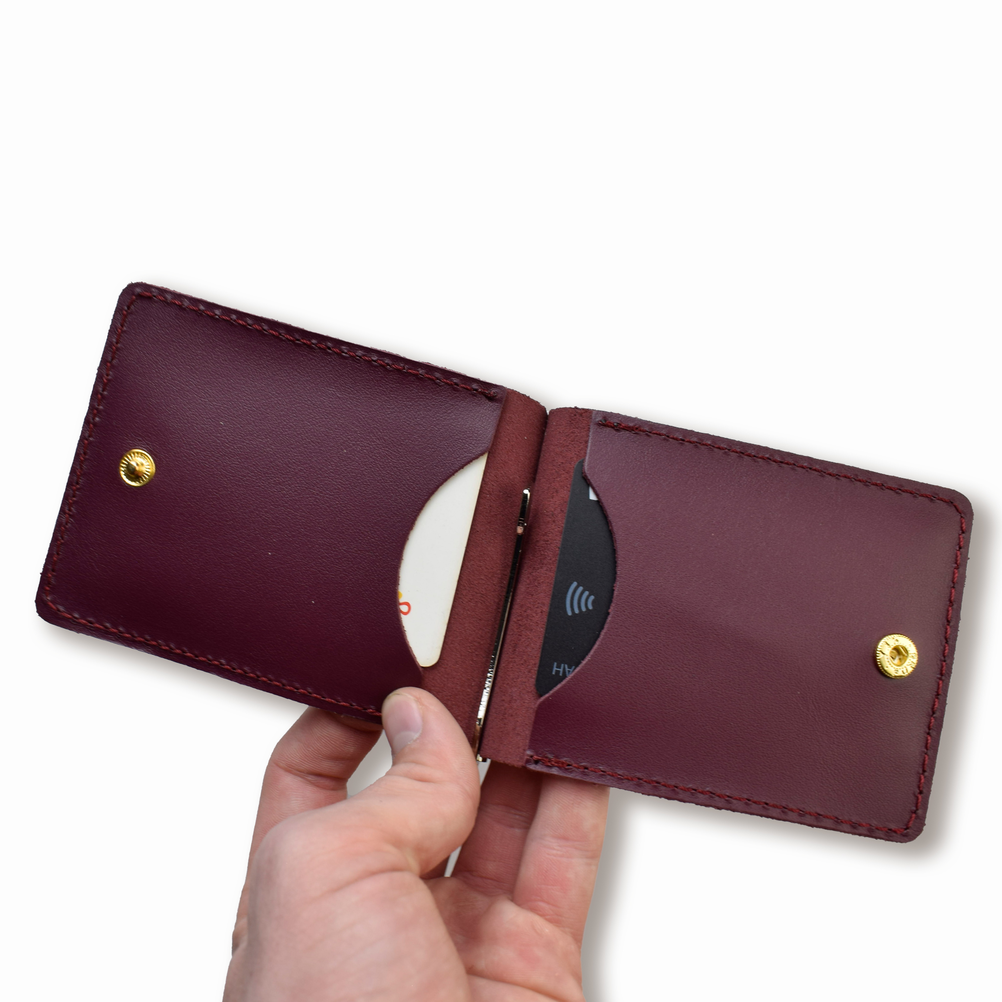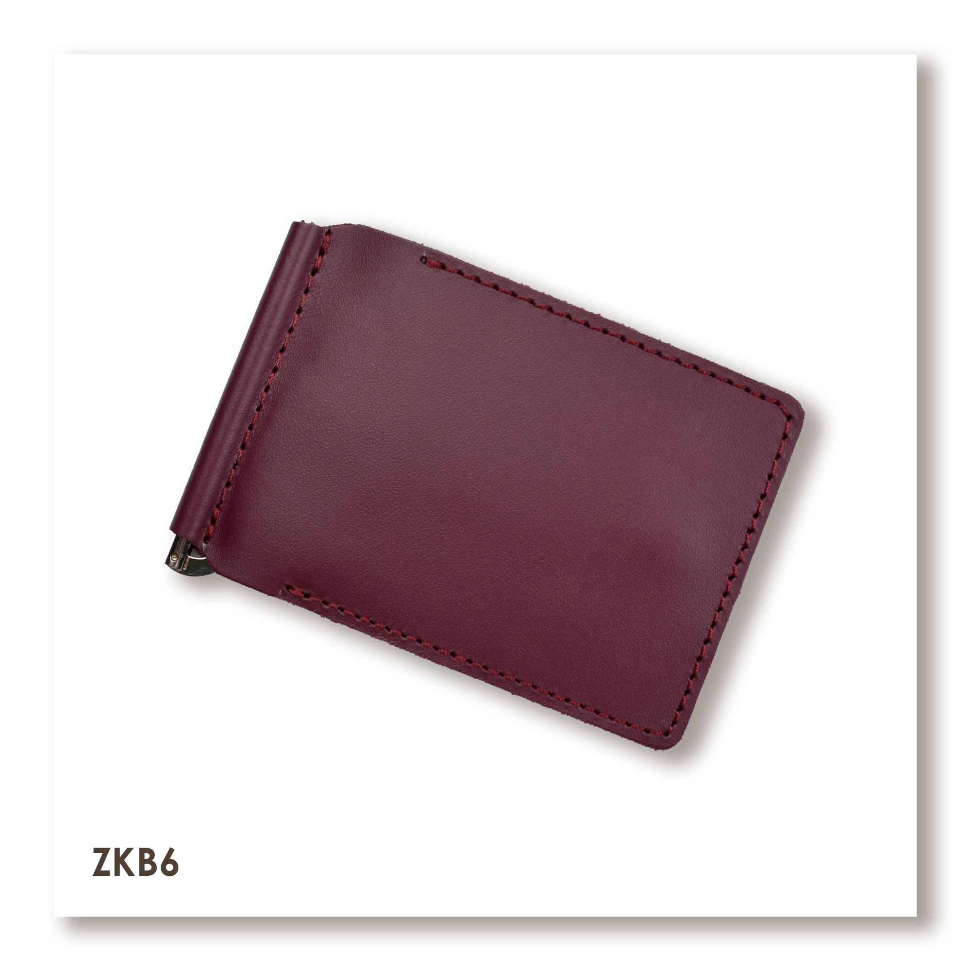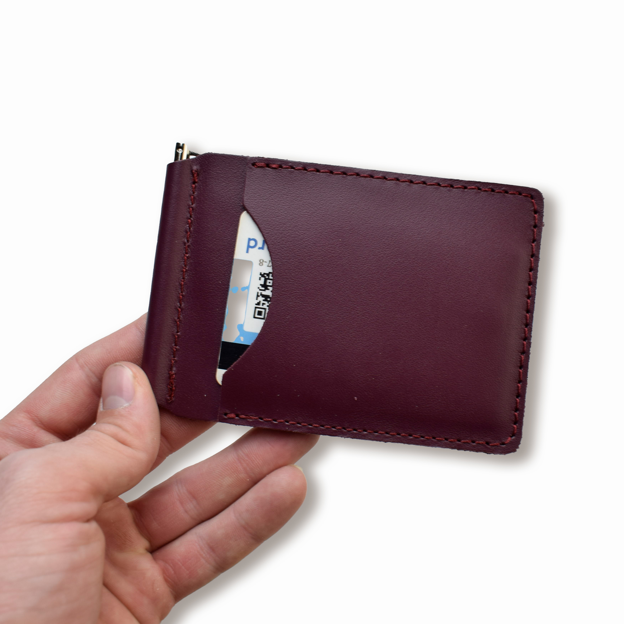 Бордовый базовый кожаный зажим для купюр и карт