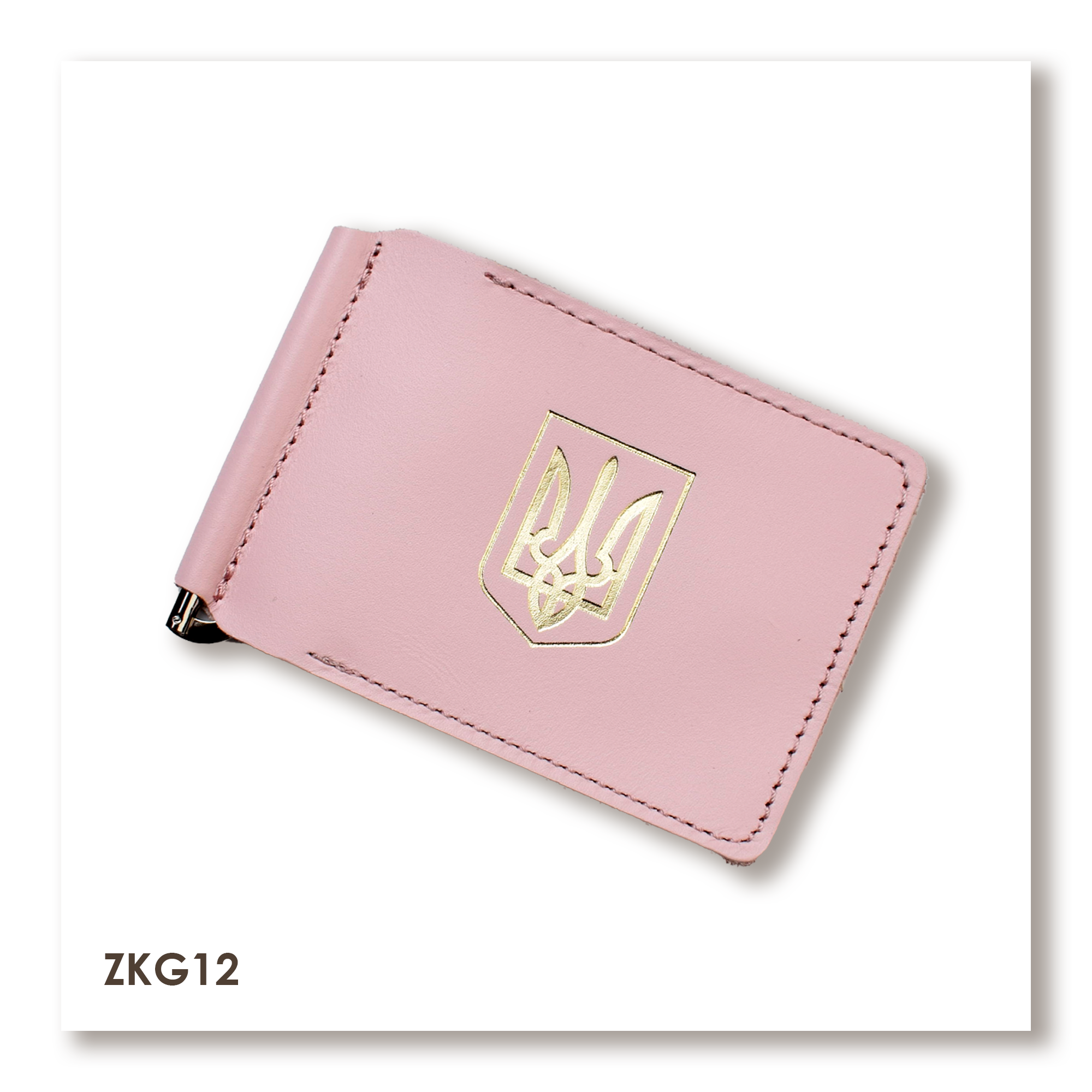 Розовый кожаный зажим для купюр и карт с гербом