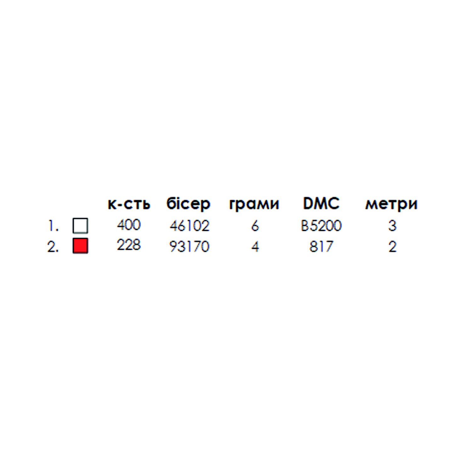 - титулка-ключ з рекомендованими кольорами бісеру Preciosa або муліне DMC та їх кількістю.